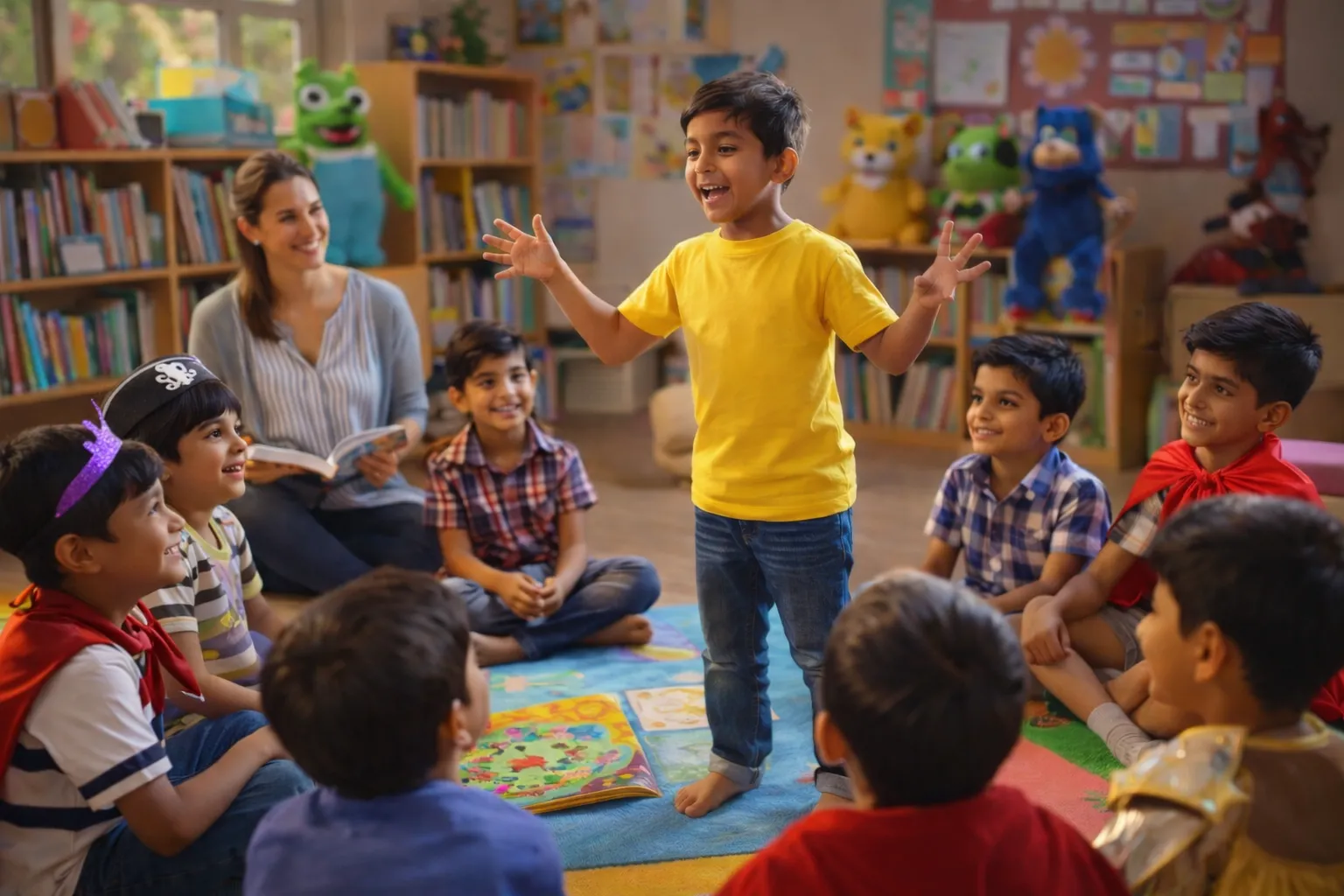 Story creation, drama, and expression to build language, confidence, and empathy.